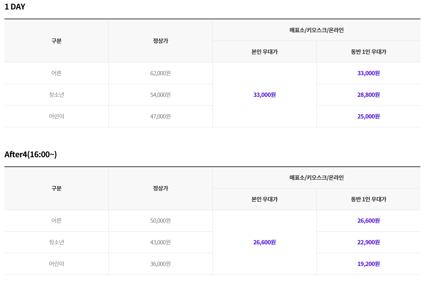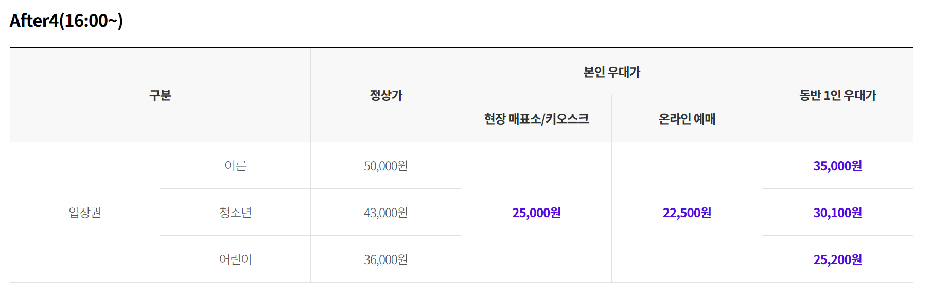 ※ 무인 키오스크 및 온라인 예매는 혜택이 적용되지 않습니다.