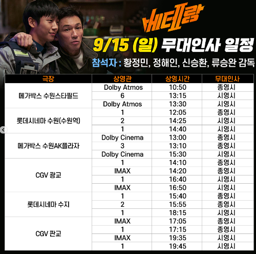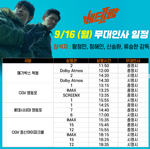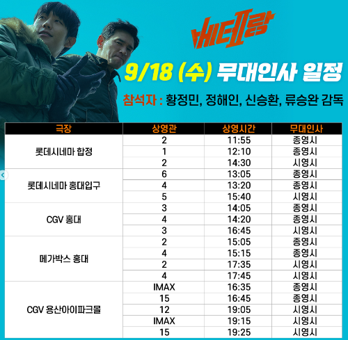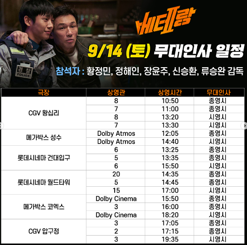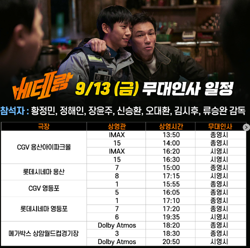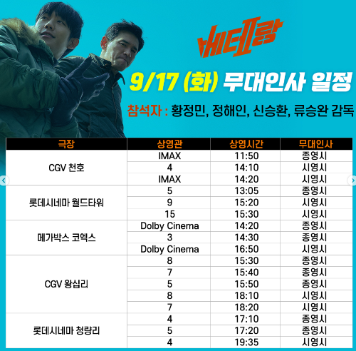 9/17(화) 베테랑 2 무대인사 일정