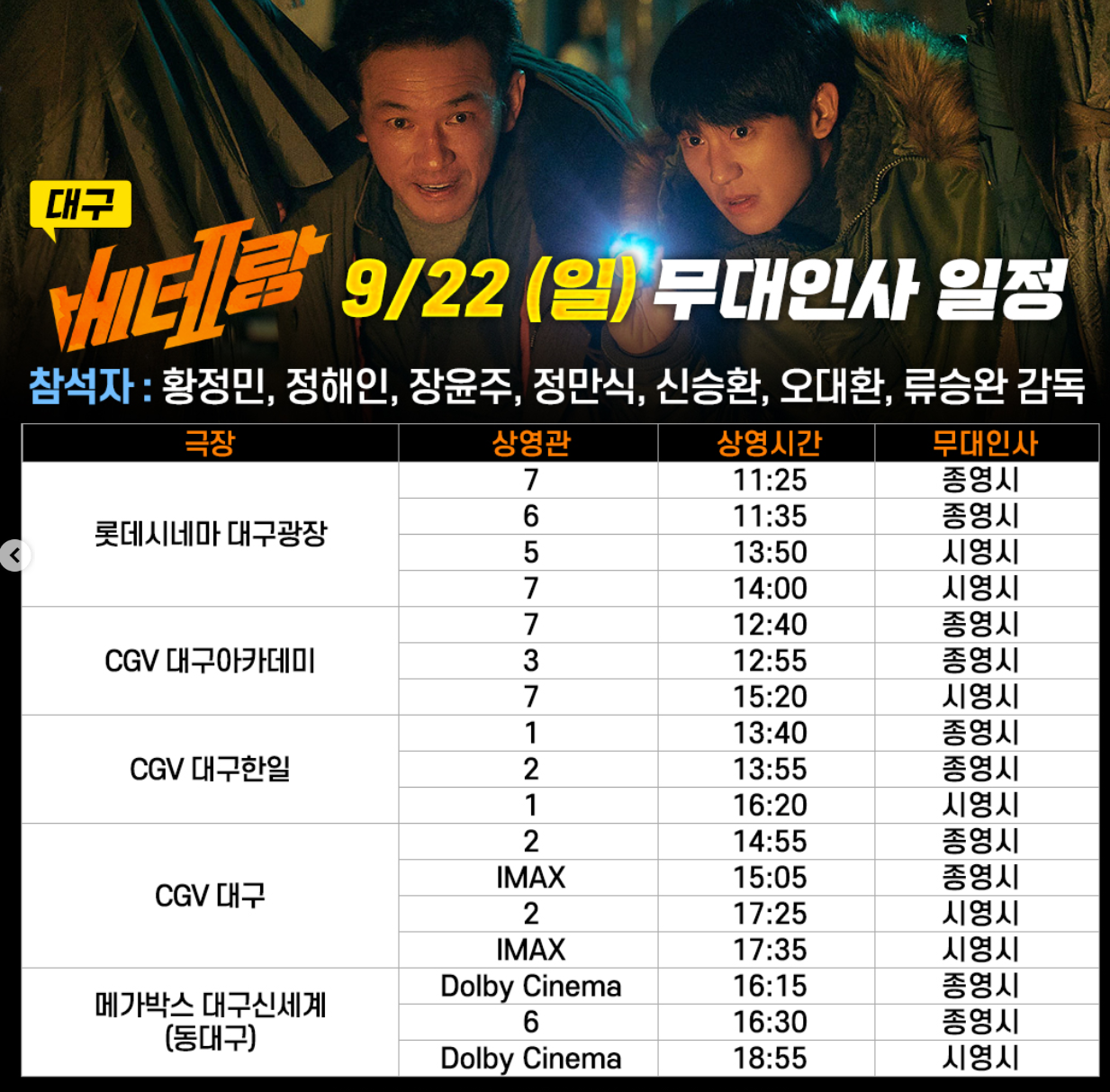 베테랑 2 무대인사 진행 극장 (대구)