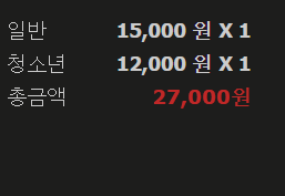 일반 15,000원/ 청소년 12,000원 (일반 영화랑 가격 차이 없다고 보시면 되어요)
