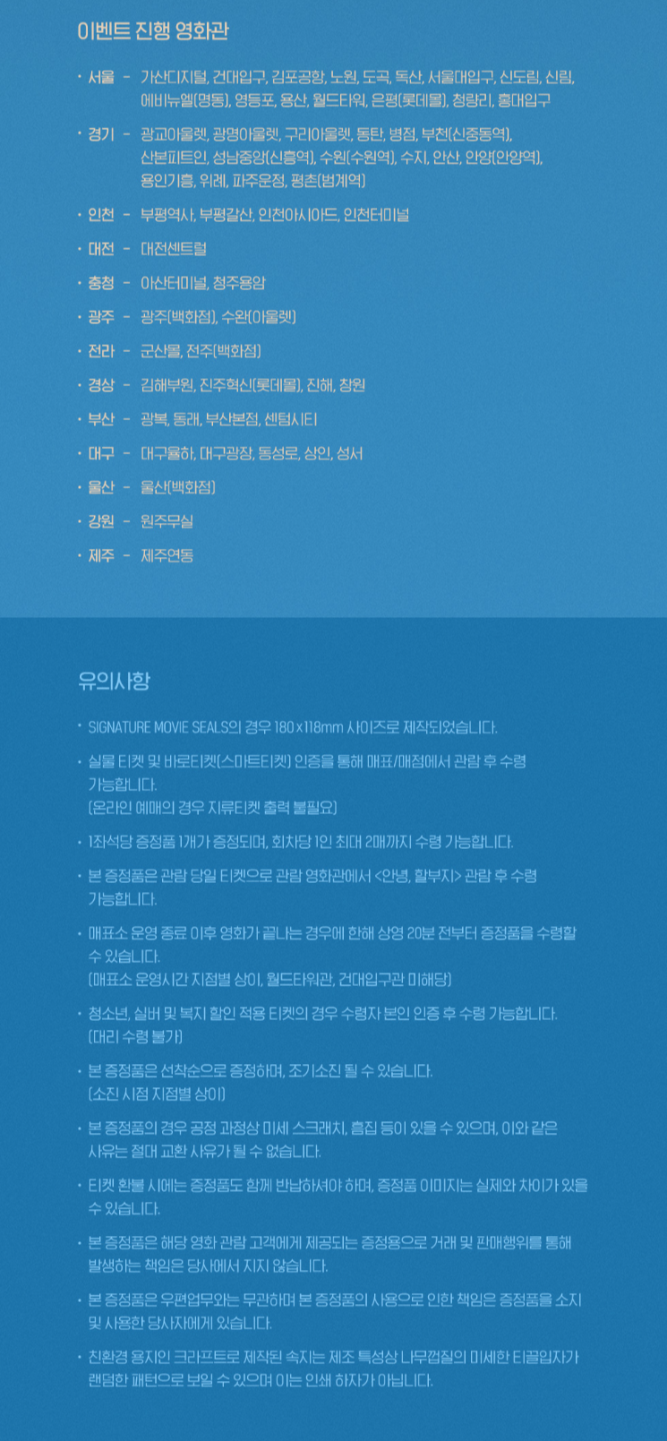 1 좌석당 증정품은 1개이며, 회차당 1인 2개까지만 수령가능합니다.