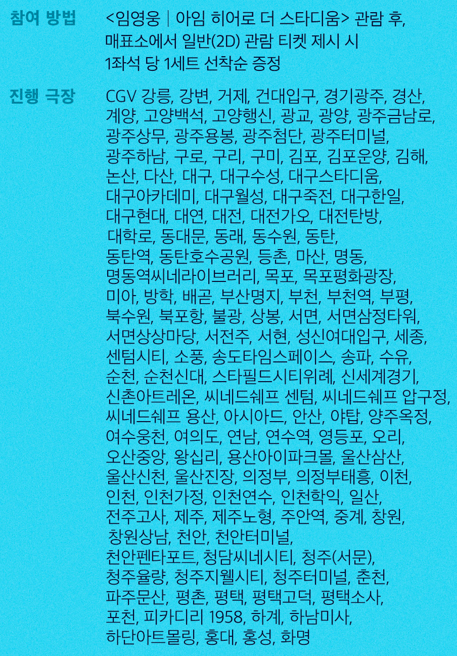 임영웅 아임 히어로 더 스타디움 관람 후, 매표소에 일반(2D) 관람 티켓 제시 시 1좌석 당 1세트 증정