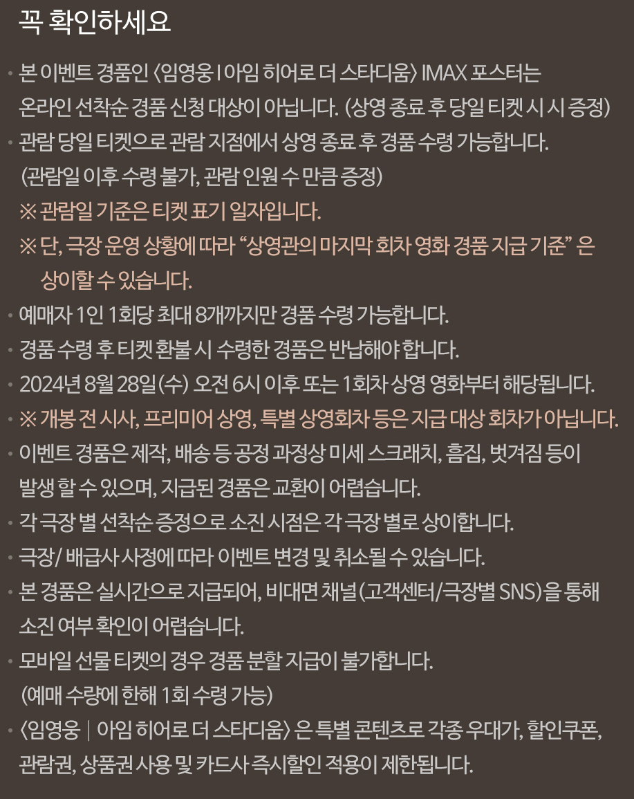 임영웅 아임 히어로 더 스타디움, IMAX 에서 관람한 고객에게는 임영웅 포스터를 증정한다고 하네요.
