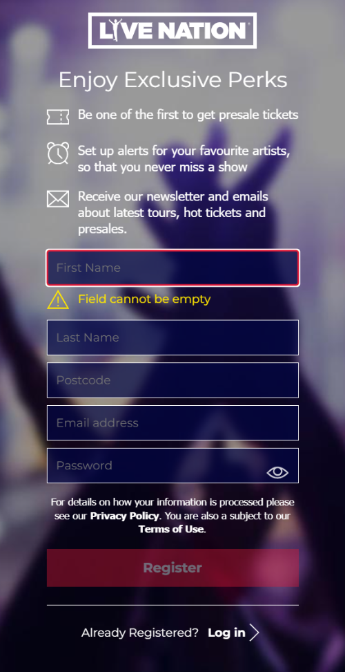 성공적으로 구독하셨다면 홈페이지에 로그인하여 “라이브네이션 선예매’ 링크를 클릭하여 2024년 10월 17일 목요일 오후 12시 찰리 푸스 내한공연 티켓을 예매
