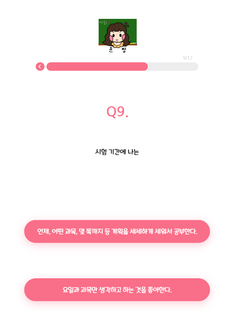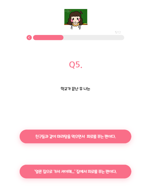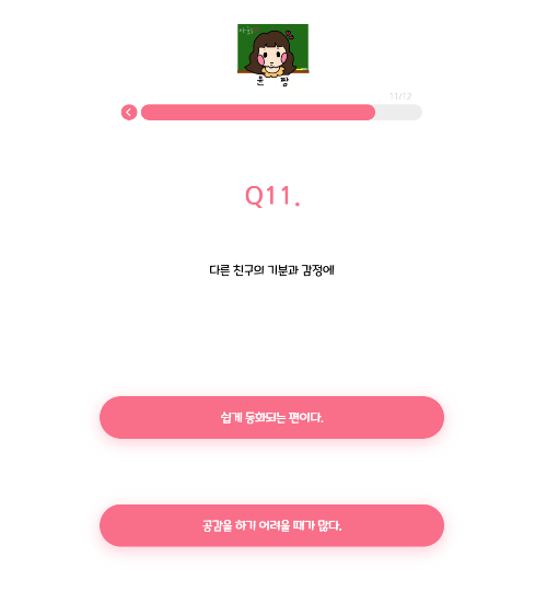 어린이들을 대상으로 하는 테스트이다 보니, 학교생활을 배경으로 질문이 구성되어 있네요.