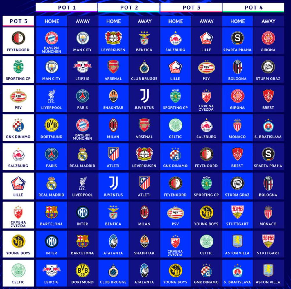 마지막으로 챔스 조추첨 포트 4 대진도 같이 살펴볼게요.
